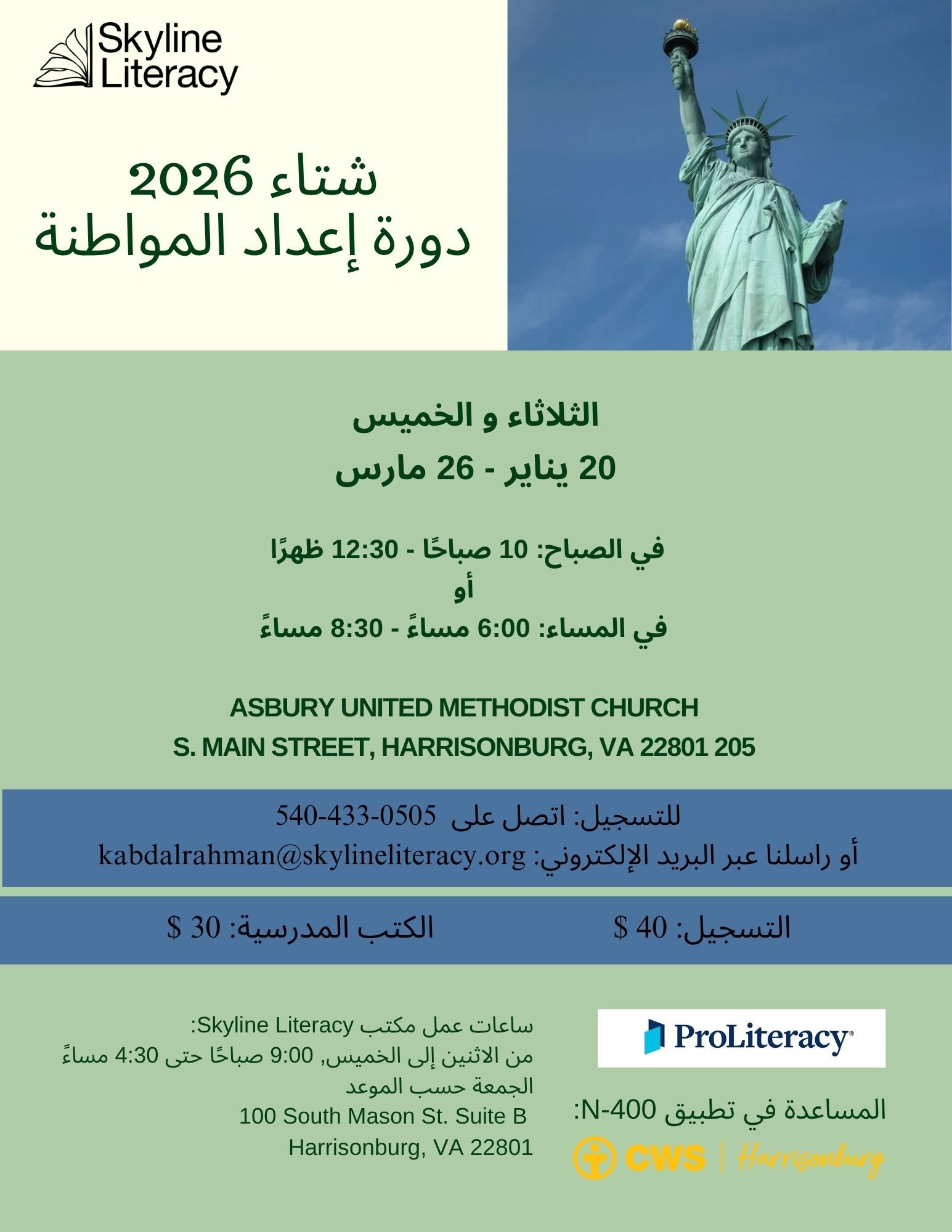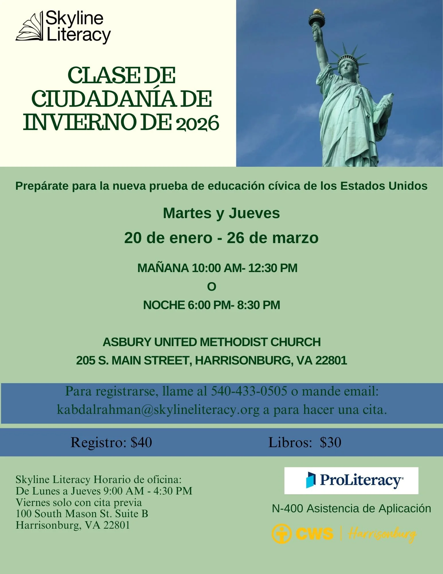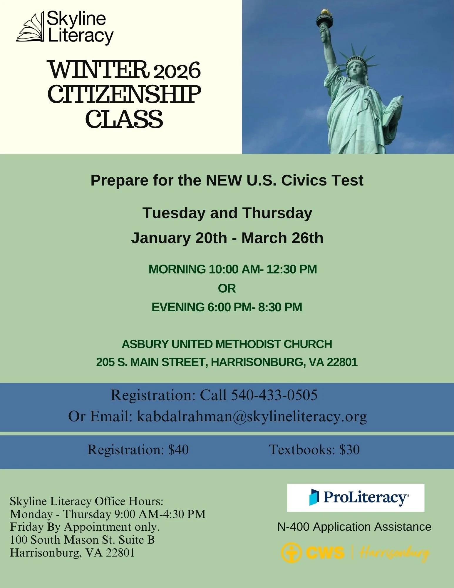 Please CALL Skyline Literacy at (540) 433-0505 or email info@skylineliteracy.org